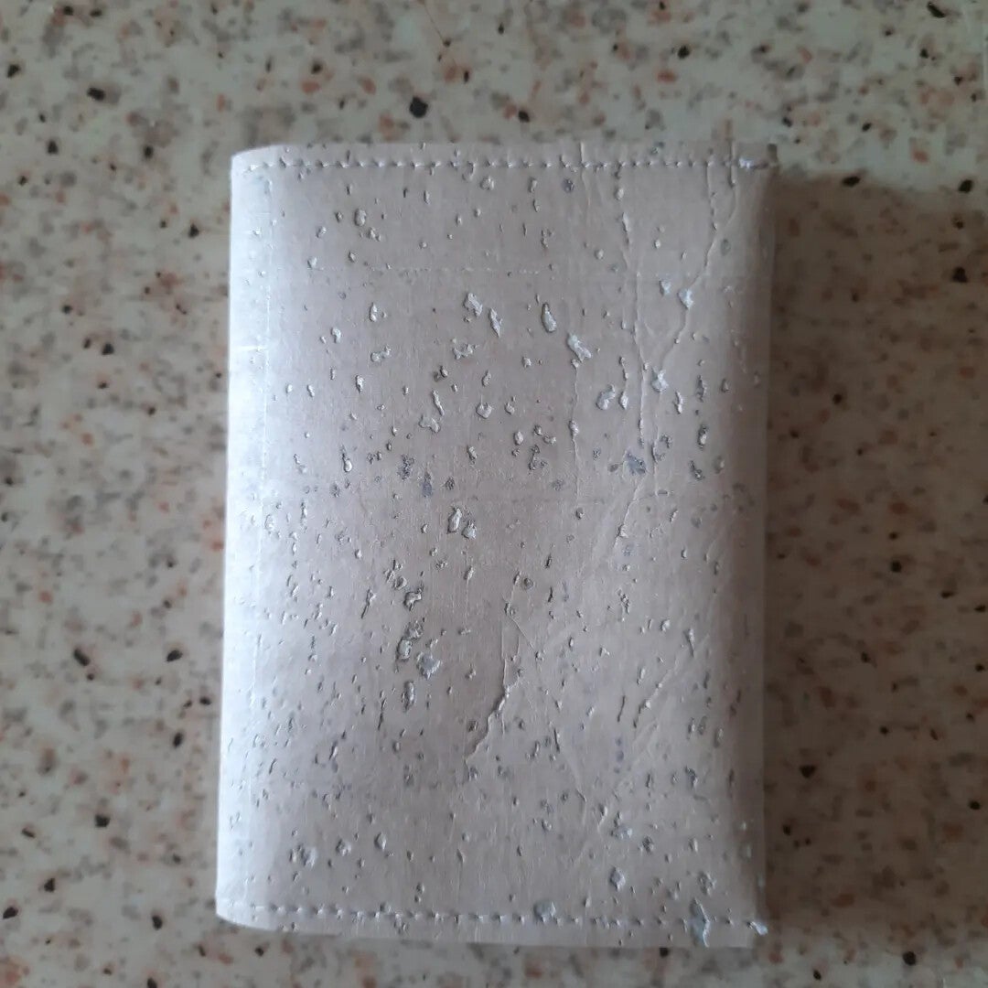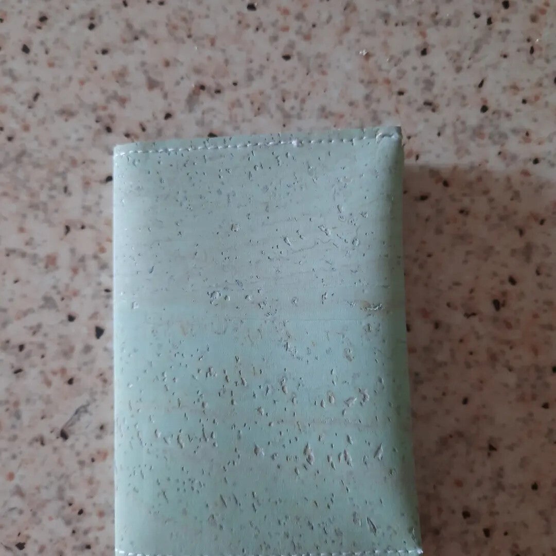 Différents portes cartes en liège couleur : noir argent, vert pastel et blanc diamant.